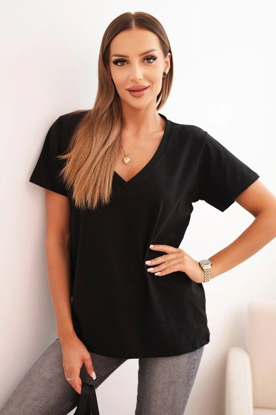 Bluzka damska bawełniana z dekoltem w serek z krótkim rękawem czarna