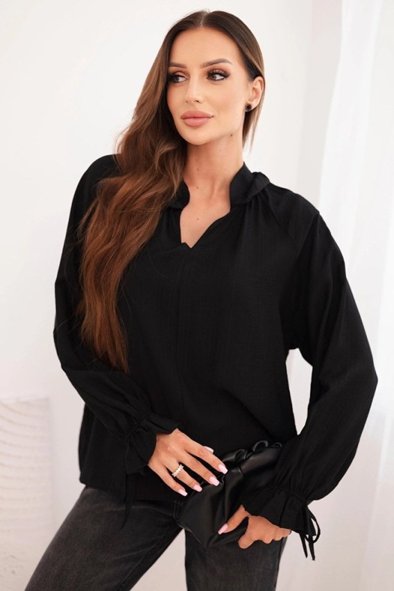 Bluzka damska z wiskozy z dekoltem V i wiązaniem przy rękawach czarna