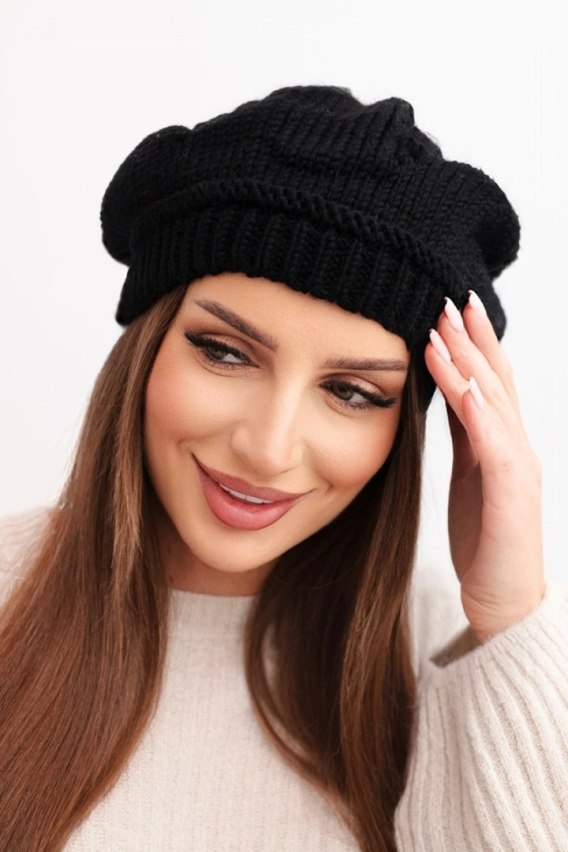Czapka damska zimowa wełniana z ozdobnymi kryształkami K459 czarna