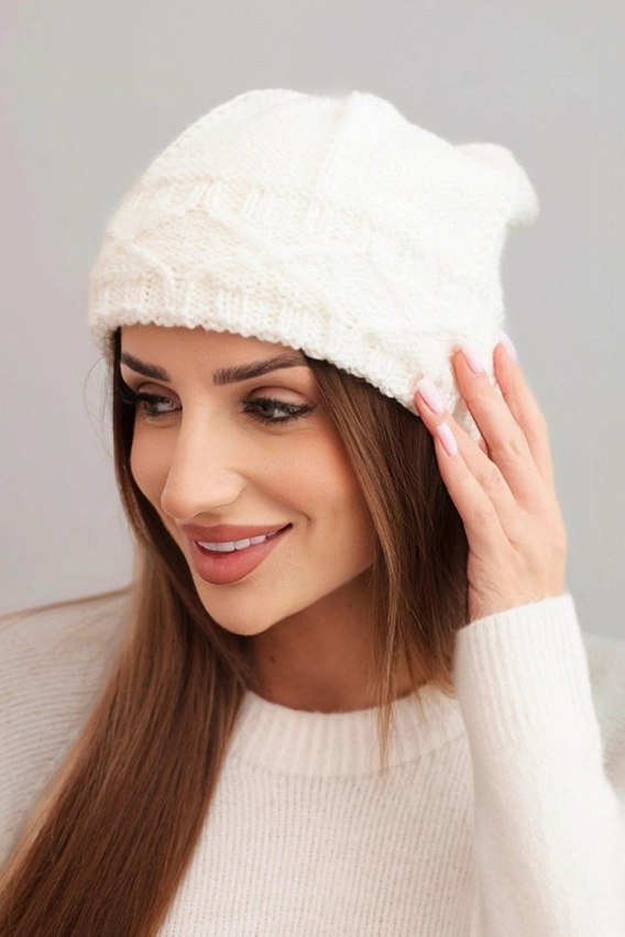 Czapka damska zimowa z wełną o grubym splocie warkoczowym K481 ecru