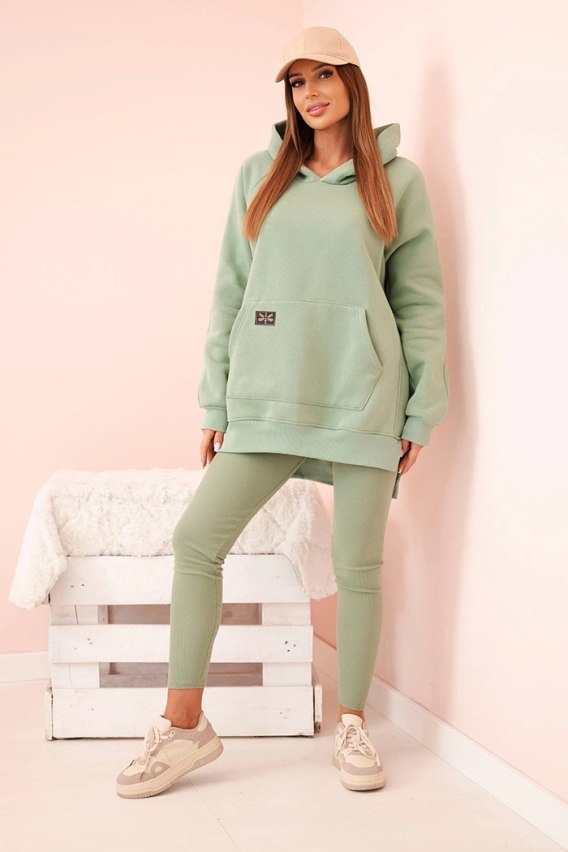 Komplet damski bawełniany bluza z kapturem i legginsy z wysokim stanem ciemny miętowy