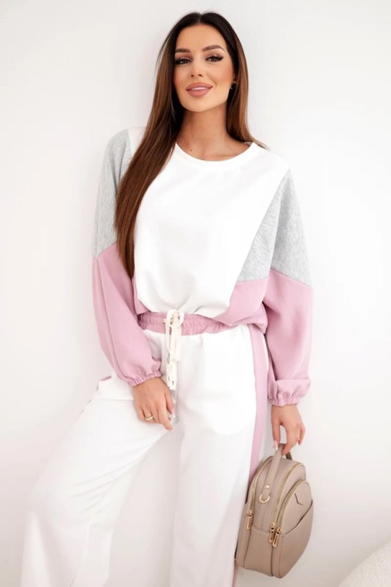 Komplet damski masełko z luźną bluzą i spodniami z szeroką nogawką ciemny różowy