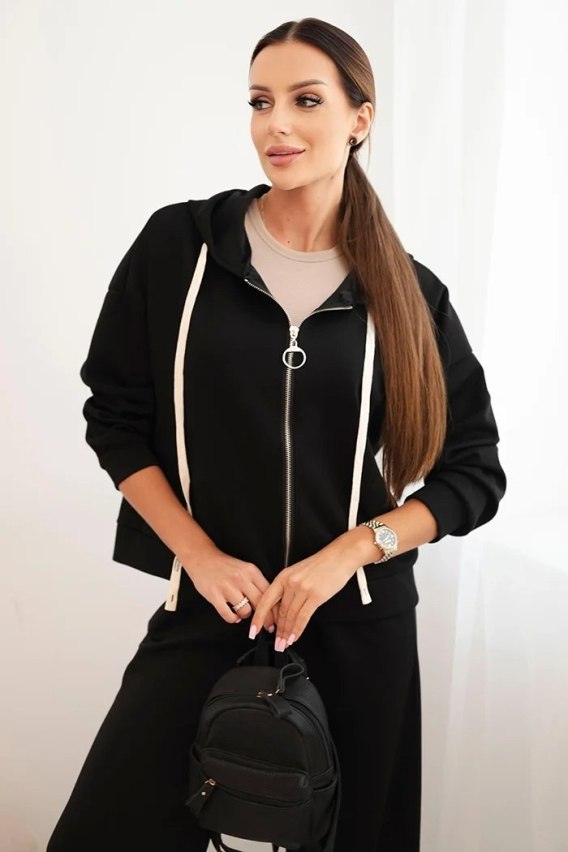 Komplet damski masełko z szeroką nogawką i bluzą na zamek czarny