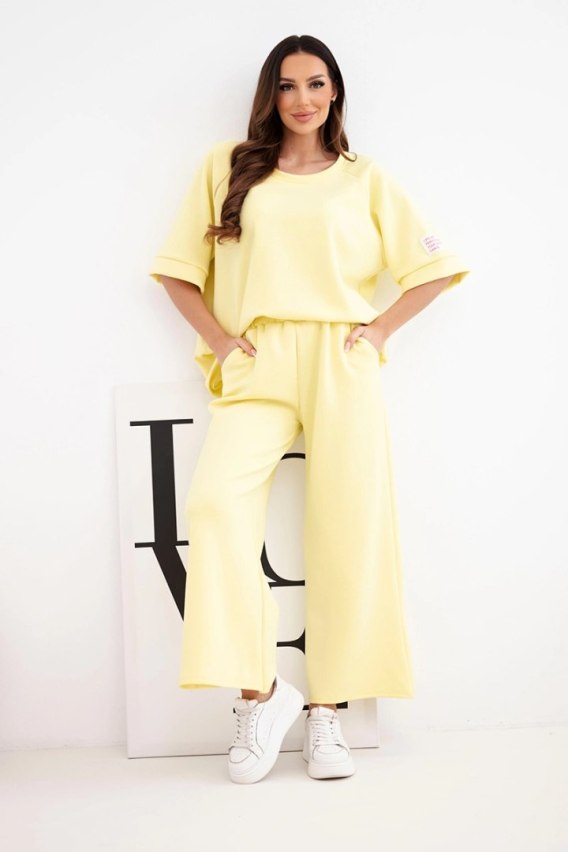 Komplet damski masełkowy z wiskozy bluza i szerokie spodnie żółty