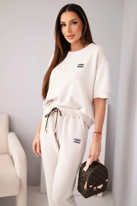 Stylowy komplet damski to doskonała propozycja dla kobiet, które cenią wygodę oraz modny, minimalistyczny styl. Zestaw składa się z luźnej bluzki z krótkim rękawem oraz komfortowych spodni z elastycznym pasem. To idealny komplet damski na co dzień - sprawdzi się zarówno podczas spaceru, zakupów, jak i w domowym zaciszu.