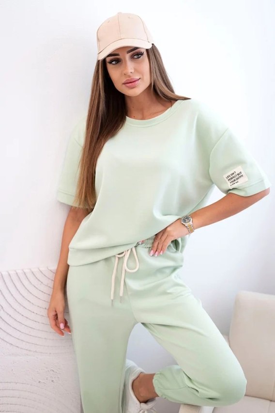 Komplet damski z wiskozy z krótkim rękawem i spodniami jasny miętowy
