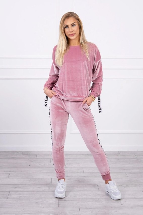 Komplet welurowy Love ciemno pudrowy róż