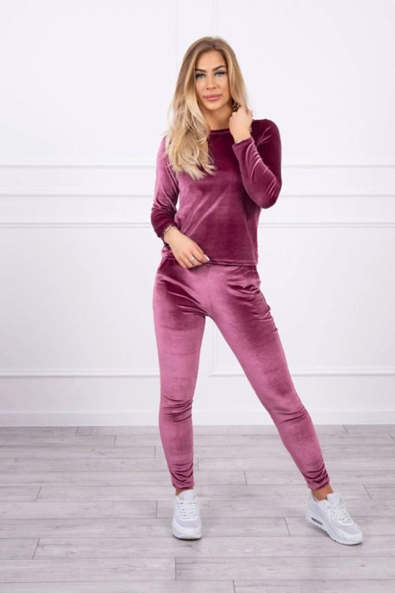 Komplet welurowy z marszczeniem z tyłu ciemny różowy