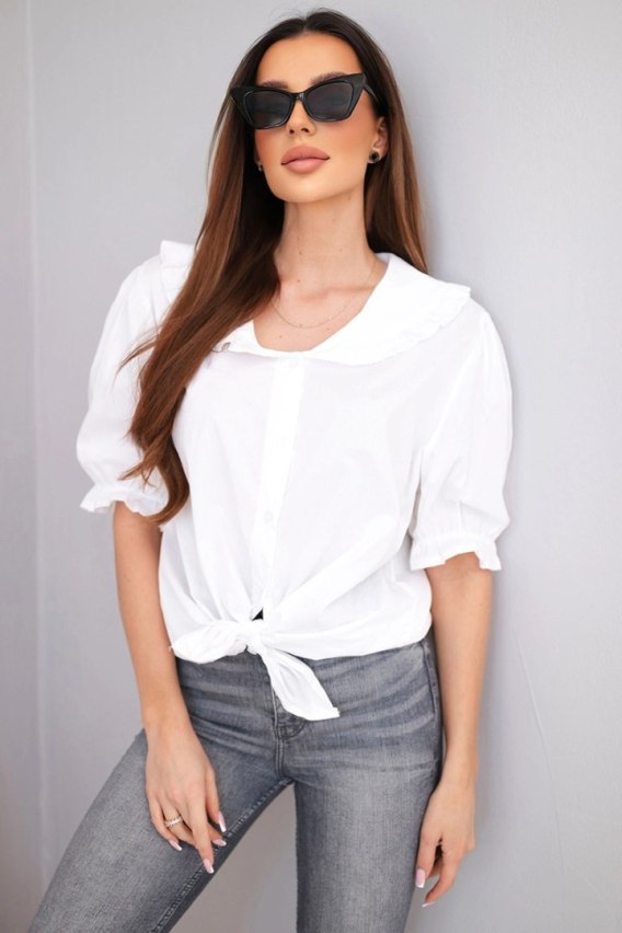 Koszula damska bawełniana z falbanką i wiązaniem biała