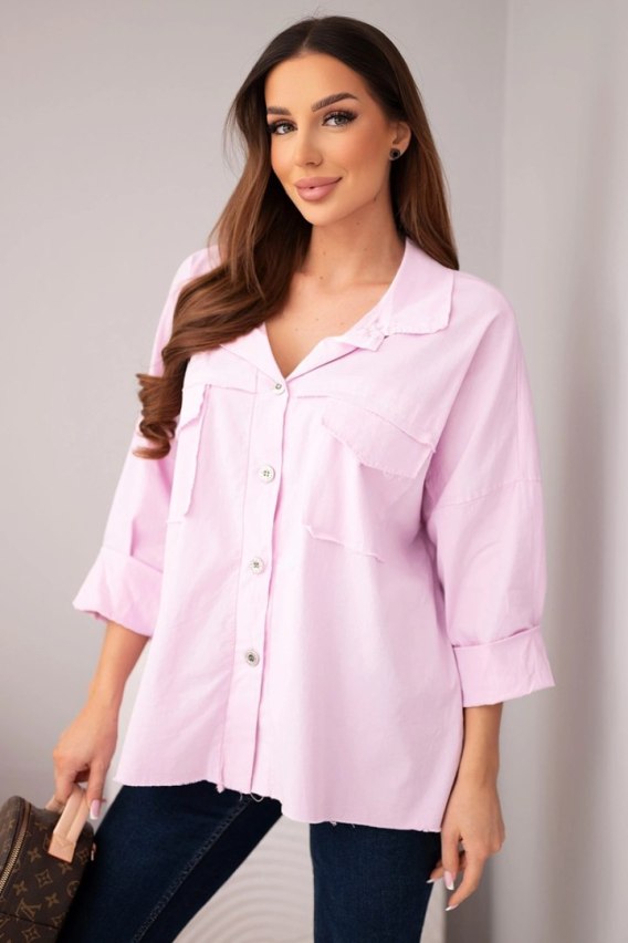 Koszula damska bawełniana z kieszeniami jasno fioletowa