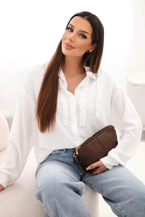 Koszula damska wiskozowa z długim rękawem i falbanami biała