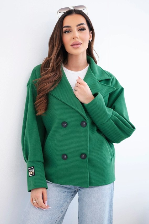 Kurtka damska krótka dwurzędowa z kołnierzem zielona