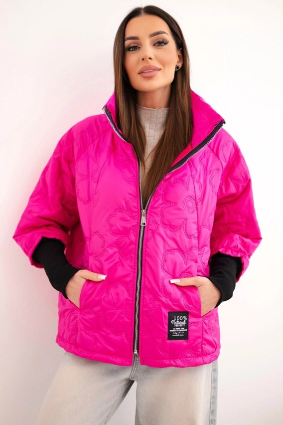 Kurtka damska wiosenna pikowana z ozdobnym tłoczeniem i zamkiem różowy neon