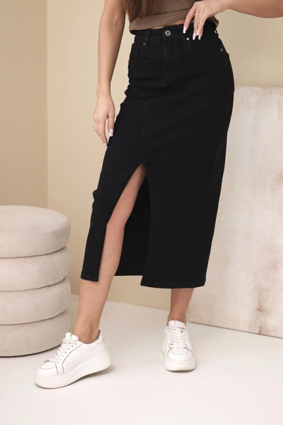 Fason: klasyczna spódnica jeansowa midi