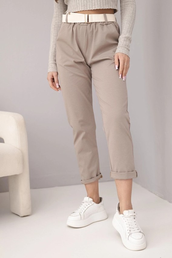 Spodnie damskie bawełniane z paskiem i podwijaną nogawką fango