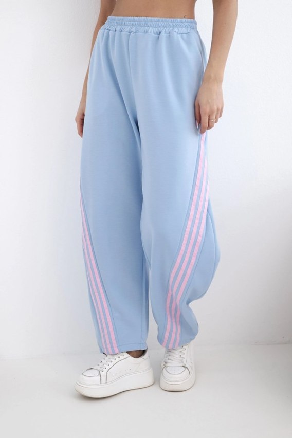 Spodnie damskie masełkowe z wiskozy z lampasem niebieskie