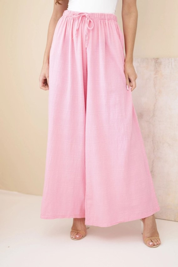 Spodnie damskie szerokie bawełniane z gumką w pasie cukierkowy róż