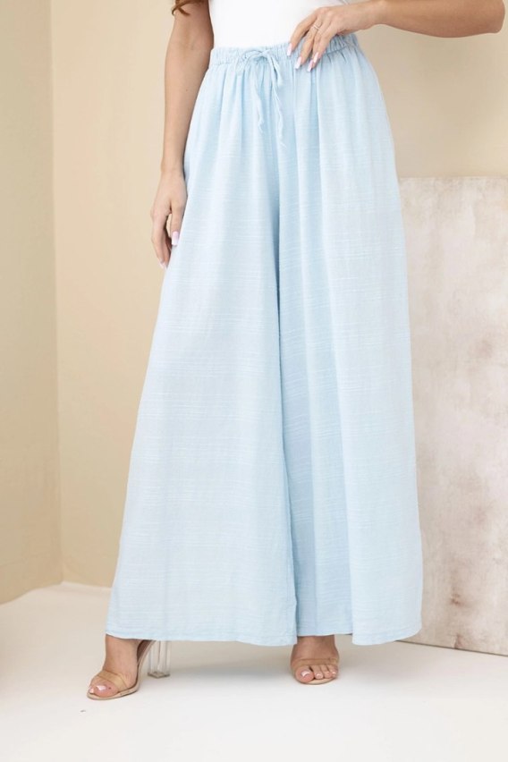 Spodnie damskie szerokie bawełniane z gumką w pasie niebieskie