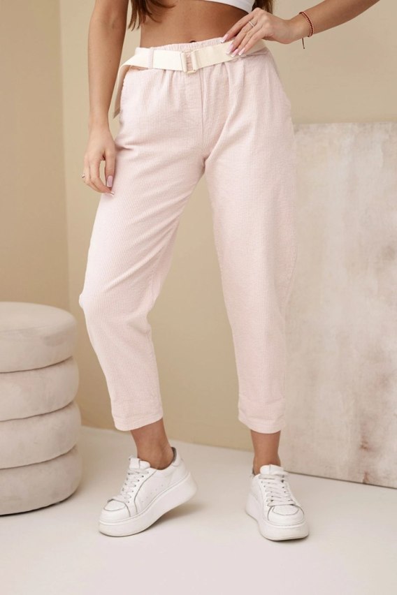 Spodnie damskie sztruksowe z paskiem ciemno pudrowy róż