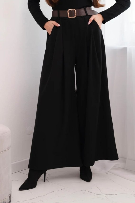 Dodatkowym atutem jest szeroki pasek z klamrą w zestawie, który podkreśla talię i dodaje stylizacji modnego akcentu. Spodnie posiadają eleganckie zakładki z przodu, co nadaje im bardziej dopracowany wygląd - świetnie sprawdzą się zarówno na co dzień, jak i do pracy czy spotkania biznesowe.