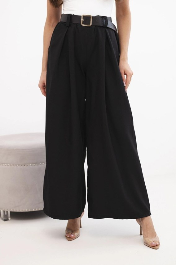 Spodnie damskie z szeroką nogawką i paskiem czarne