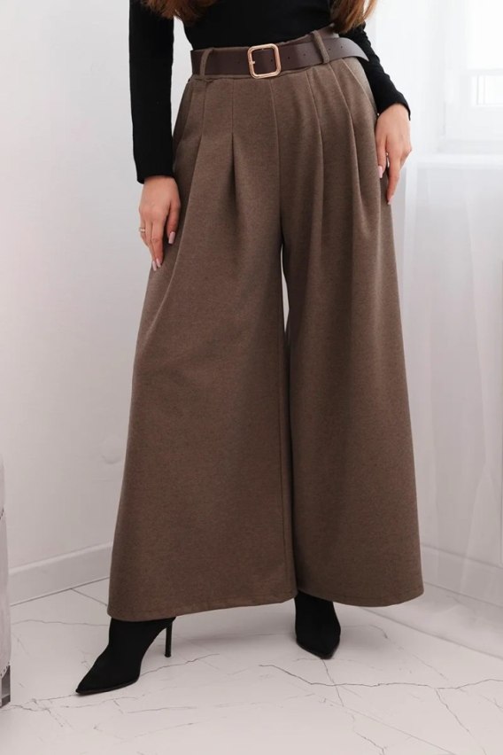 Spodnie damskie z szeroką nogawką i paskiem fango