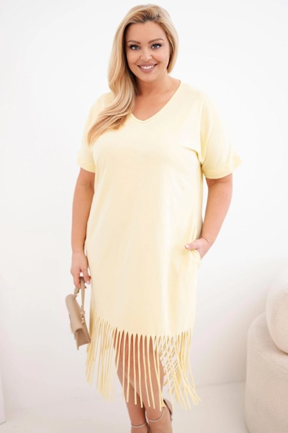 Sukienka damska bawełniana z dekoltem V i frędzlami na dole żółta