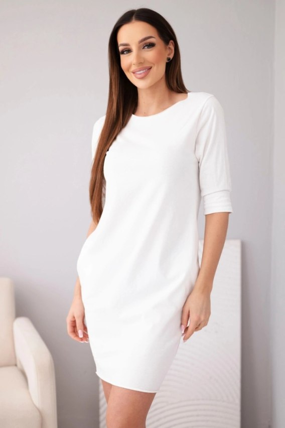 Sukienka damska bawełniana z rękawem 3/4 i kieszeniami biała