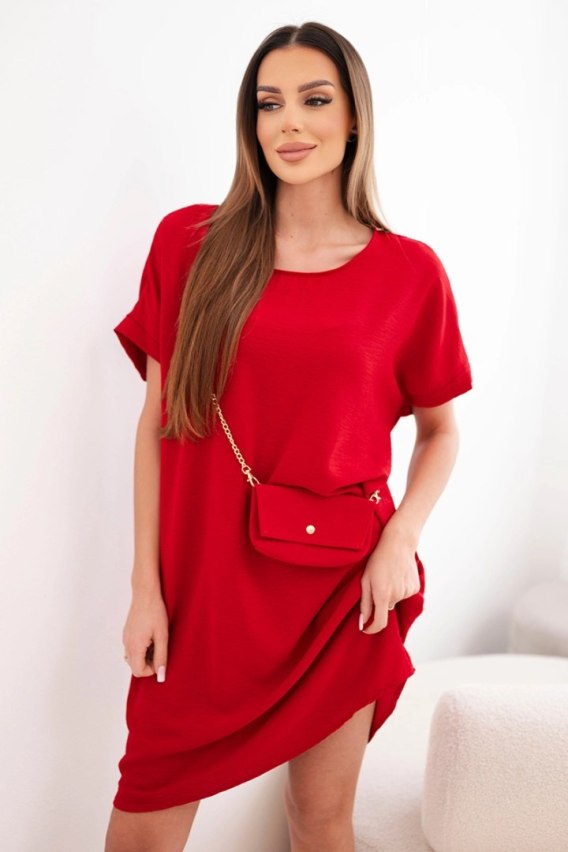 Sukienka damska z krótkim rękawem i torebką na łańcuszku bordowa