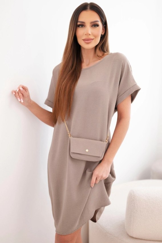 Sukienka damska z krótkim rękawem i torebką na łańcuszku fango