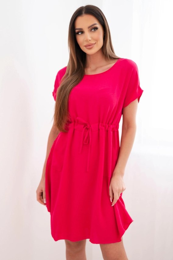 Sukienka damska z krótkim rękawem i wiązaniem w pasie fuksja