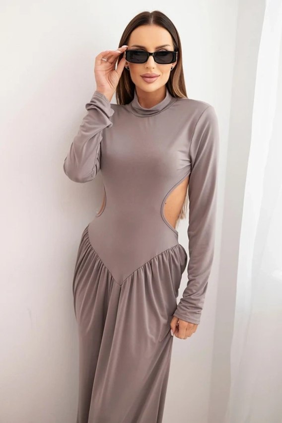 Sukienka damska z wiskozą długa z golfem i odkrytymi plecami fango