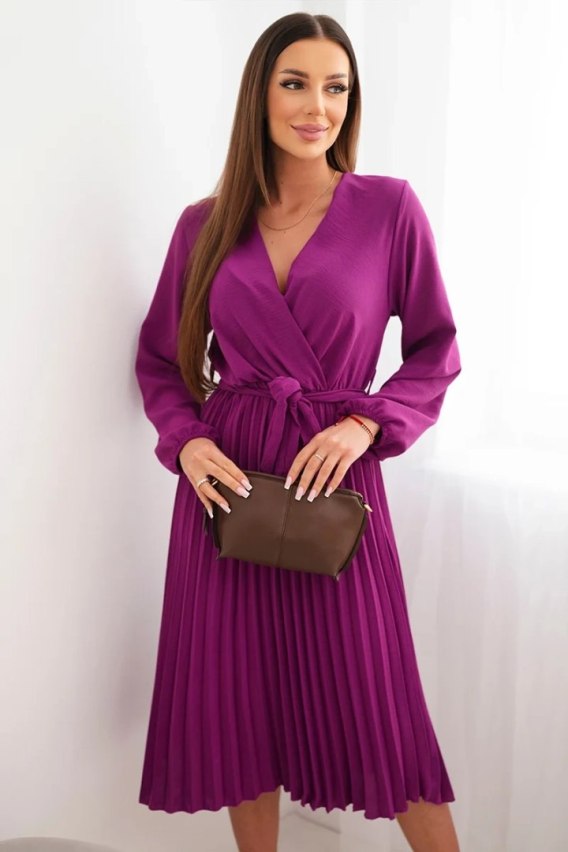 Sukienka wiązana z plisowanym dołem ciemno fioletowa