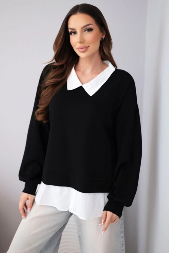 Bluza damska masełkowa z wiskozowy i z koszulową wstawką czarna