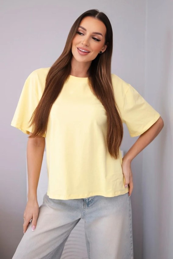 Bluzka damska bawełniana basic z krótkim rękawem żółta