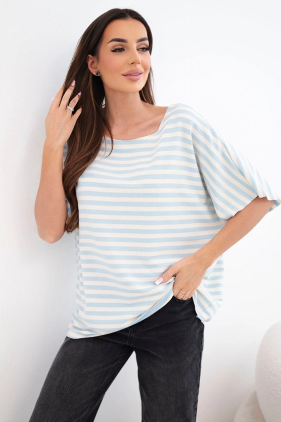 Model wykonany jest w 100% z naturalnej bawełny, dzięki czemu materiał jest przewiewny, miękki i przyjemny dla skóry. Szeroki, luźny rękaw oraz wygodny dekolt sprawiają, że bluzka idealnie nadaje się na cieplejsze dni. Doskonale komponuje się zarówno z jeansami, szortami, jak i spódnicami, tworząc lekkie, casualowe stylizacje. Produkcja Włoska gwarantuje wysoką jakość wykonania.