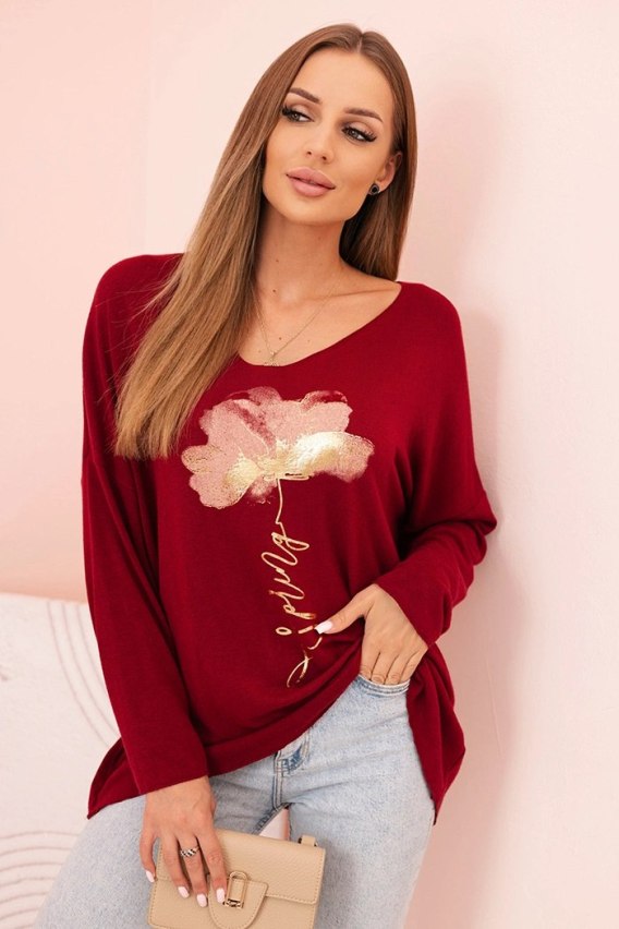 Model o luźniejszym kroju z delikatnie opadającym rękawem zapewnia komfort i swobodę ruchów, a dekolt w łódkę dodaje całości kobiecego charakteru. Dekoracyjny nadruk ze złotym połyskiem przyciąga wzrok i dodaje stylizacji wyjątkowego uroku.