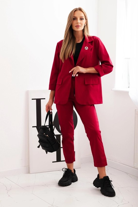 Komplet damski Punto elegancka marynarka i spodnie bordowy