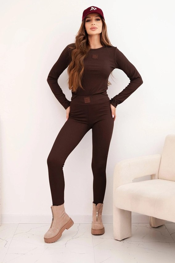 Ten komplet damski bawełniany z długim rękawem i legginsami to idealny wybór na co dzień - wygodny, dopasowany i wykonany z elastycznej, prążkowanej dzianiny. Składa się z długiej, dopasowanej bluzki z okrągłym dekoltem oraz legginsów z wysokim stanem, które pięknie podkreślają sylwetkę.