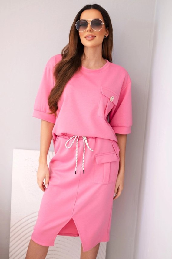 Komplet damski masełkowy z bluzką i spódnicą midi różowy