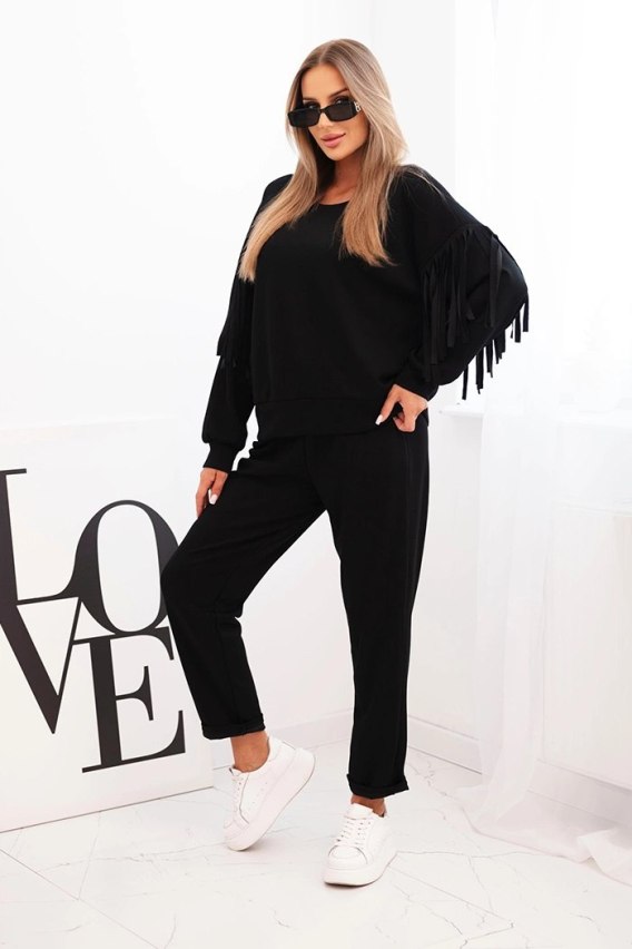 Komplet w odcieniu masełkowym z frędzlami na rękawach