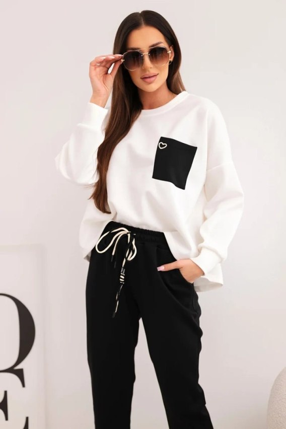 Komplet damski masełkowy z kontrastową kieszonką czarny