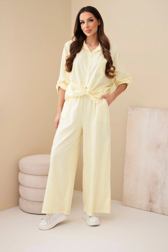 Stylowy komplet damski masełkowy to idealna propozycja dla kobiet ceniących wygodę i modny, sportowy styl. Zestaw składa się z luźnej bluzy oraz komfortowych spodni ze ściągaczem, tworząc spójną i nowoczesną stylizację na co dzień.
