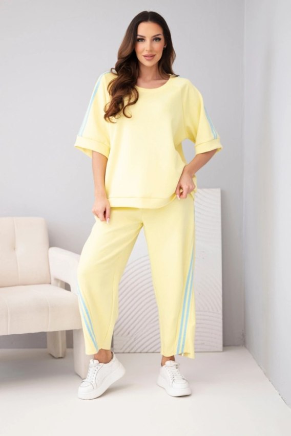 Komplet damski masełkowy z wiskozy bluza i spodnie z lampasami żółty