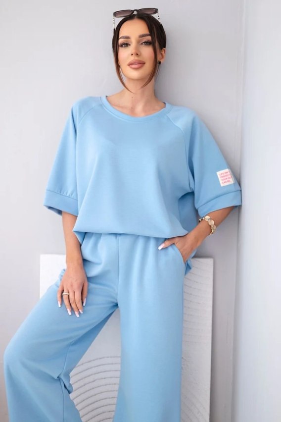 Wykonany z wysokiej jakości wiskozy z dodatkiem elastanu komplet jest niezwykle miękki, delikatny dla skóry i przyjemny w noszeniu. Bluza o swobodnym kroju świetnie układa się na sylwetce, a spodnie z szeroką nogawką nadają stylizacji nowoczesnego charakteru. Idealny wybór na co dzień, do pracy w luźniejszym wydaniu, na spacer czy podróż.