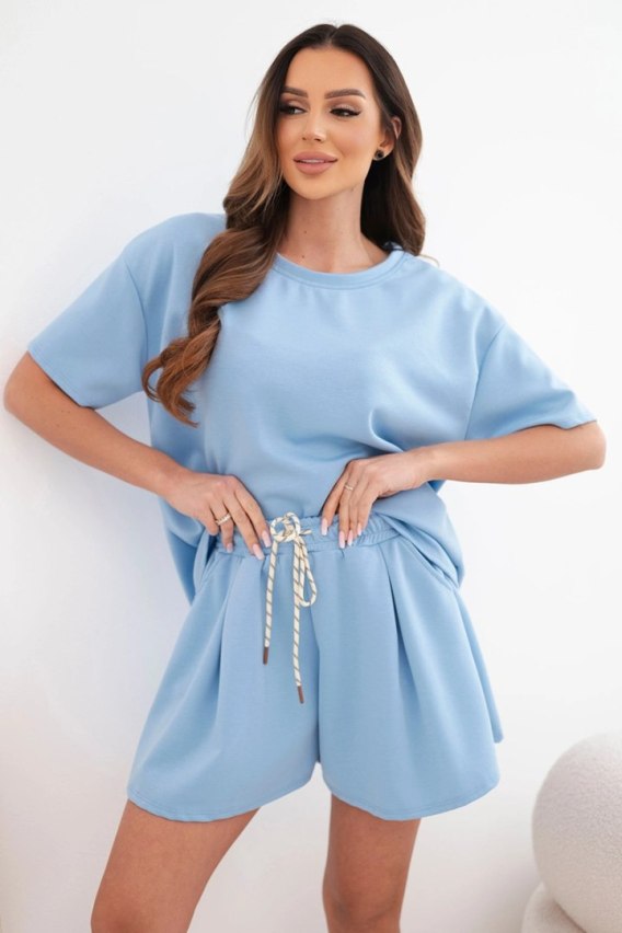 Komplet damski wiskozowy masełko z krótkim rękawem i spodenki z wysokim stanem niebieski