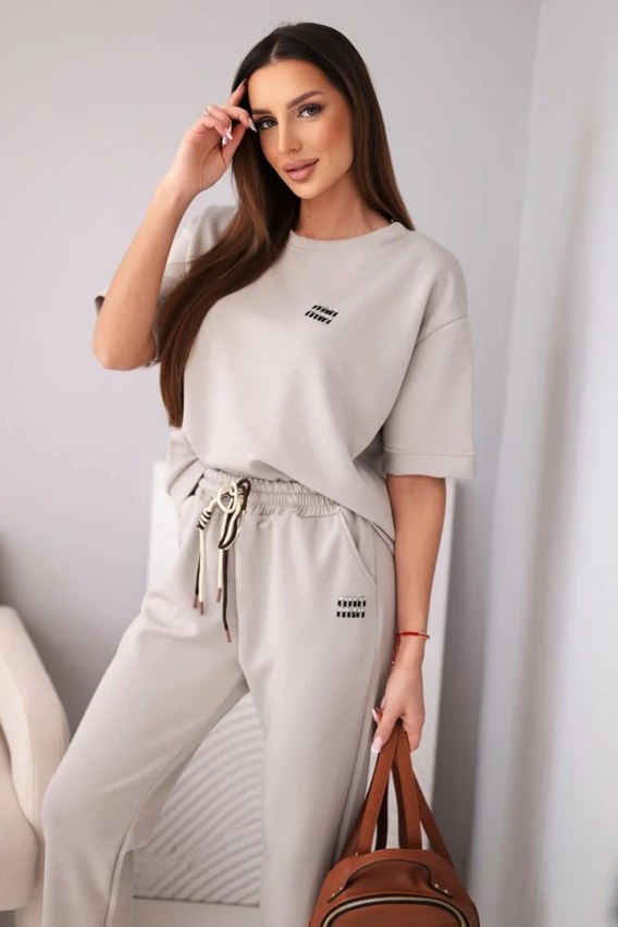 Stylowy komplet damski to doskonała propozycja dla kobiet, które cenią wygodę oraz modny, minimalistyczny styl. Zestaw składa się z luźnej bluzki z krótkim rękawem oraz komfortowych spodni z elastycznym pasem. To idealny komplet damski na co dzień - sprawdzi się zarówno podczas spaceru, zakupów, jak i w domowym zaciszu.