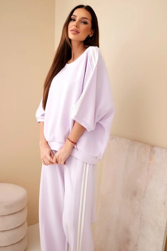 Komplet damski wiskozowy masełko z szeroką nogawką i luźną bluzą jasno fioletowy