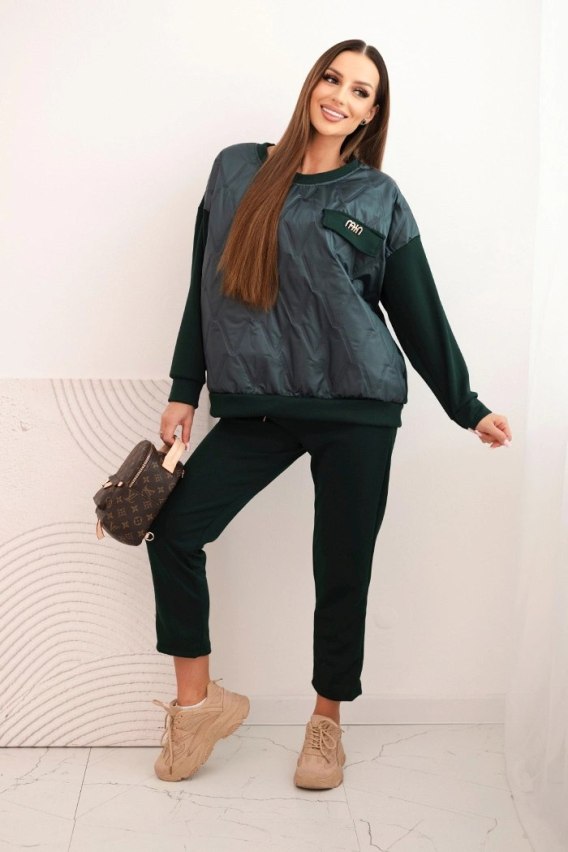 Komplet dresowy damski z wiskozy z pikowaną bluzą i spodniami ciemno zielony