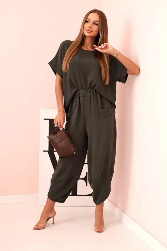 Odkryj wyjątkowy komplet wykonany z przewiewnej i delikatnej wiskozy, który łączy w sobie styl i komfort noszenia. Bluzka o klasycznym kroju doskonale układa się na sylwetce, zapewniając swobodę ruchów i elegancki wygląd. Dzięki lekkiej tkaninie jest niezwykle przyjemna dla skóry, idealna na każdą porę roku. Spodnie, zaprojektowane z myślą o wygodzie, posiadają elastyczny pas i luźniejszy fason, co sprawia, że świetnie dopasowują się do sylwetki. To uniwersalny zestaw, który doskonale sprawdzi się zarówno w codziennych stylizacjach, jak i na bardziej eleganckie okazje. Postaw na komplet z wiskozy, jeśli cenisz sobie lekkość, naturalne tkaniny i modny wygląd. To idealny wybór dla kobiet, które pragną czuć się stylowo i komfortowo przez cały dzień. Rozmiar jest uniwersalny i będzie odpowiedni dla Pań w rozmiarze S, M lub L.